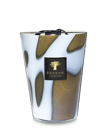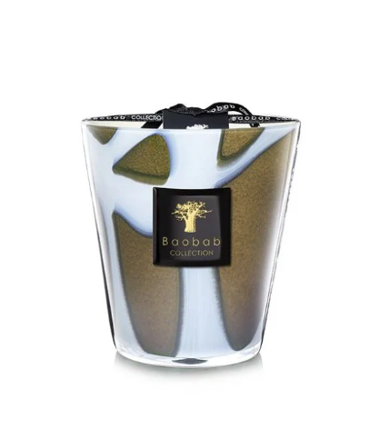La bougie parfumée Stones Agathe fait partie des Collections permanente de la marque Baobab. Chaque bougie a un décor unique car son son écrin en verre est soufflé à la bouche. Son parfum incroyable, frais et envoûtant est composé de rhubarbe, baie d'açaï et pivoine