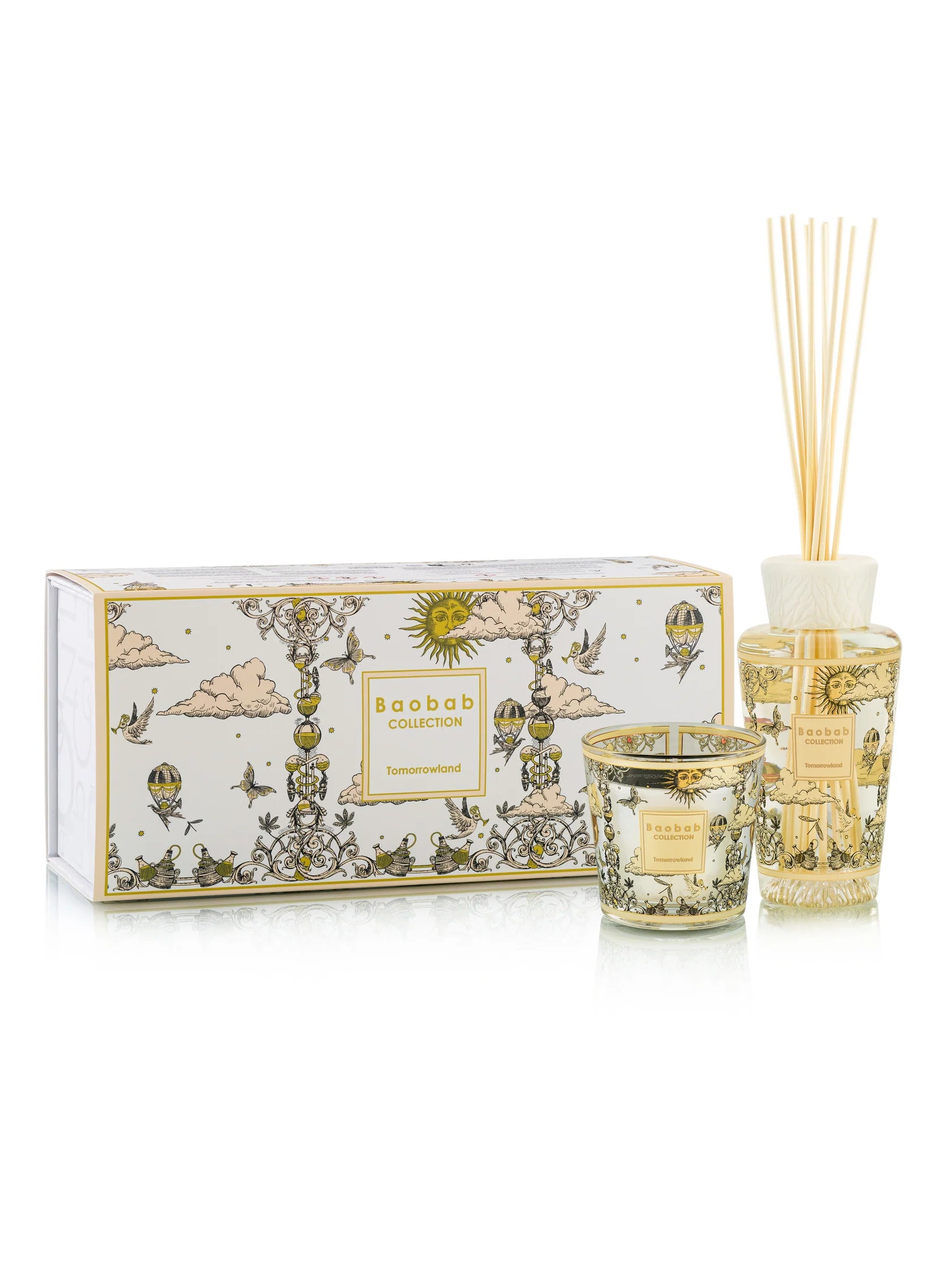 Cette édition limitée créée en collaboration avec le Festival de musique belge bien connu réunit une bougie parfumée et un diffuseur, tous deux décorés d’un motif crème et or inspiré de l’univers de Jules Verne. Leur parfum printanier, mêlant poire, muguet et mousse, offre une expérience olfactive unique. Un QR code permet d’accéder à une playlist exclusive Tomorrowland pour prolonger l’enchantement.